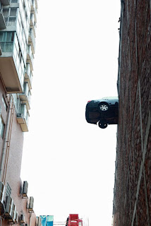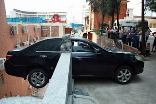 Kereta itu tidak terjatuh sebaliknya bahagian belakang kenderaan tersebut tergantung pada ketinggian 18.28 meter.